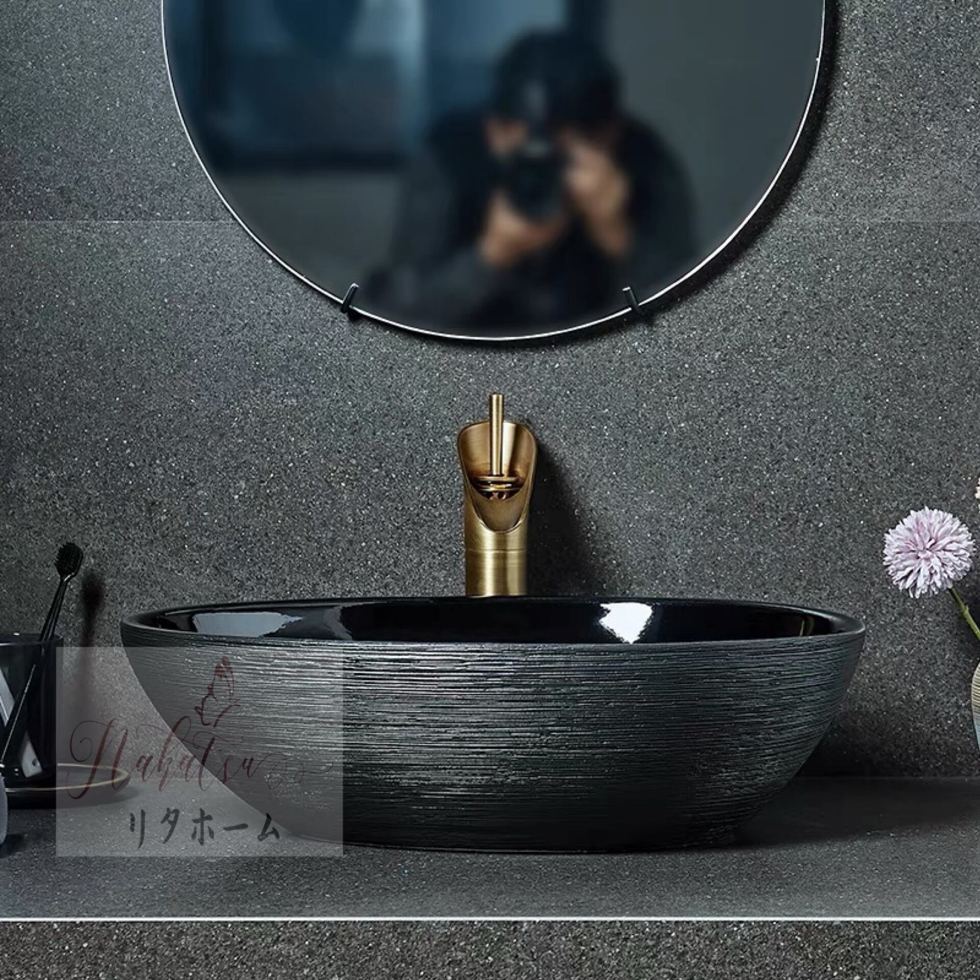 高級洗面台 洗面ボウルセット .洗面ボール 陶器 手水鉢 蛇口 排水金具付き