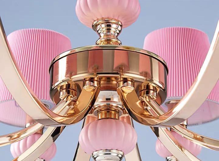 0720ペンダントライト.洋風照明 シャンデリア 北欧デザイン シーリングライト 高級天井照明 6灯ピンク