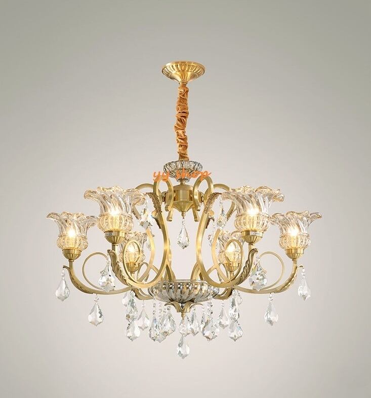 0720L65-6ペンダントライト.洋風照明 シャンデリア 北欧デザイン シーリングライト 天井照明.水晶.銅6灯.