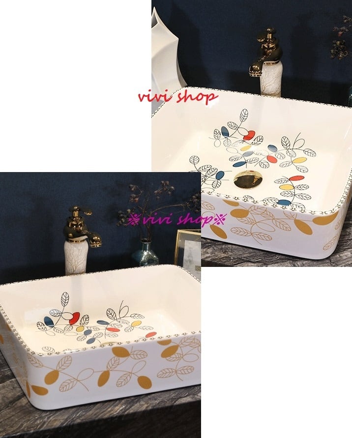 1220F152豪華洗面ボウルセット陶器洗面台 トイレ 手水鉢 手洗器 手洗い鉢 洗面器 蛇口 排水金具付き