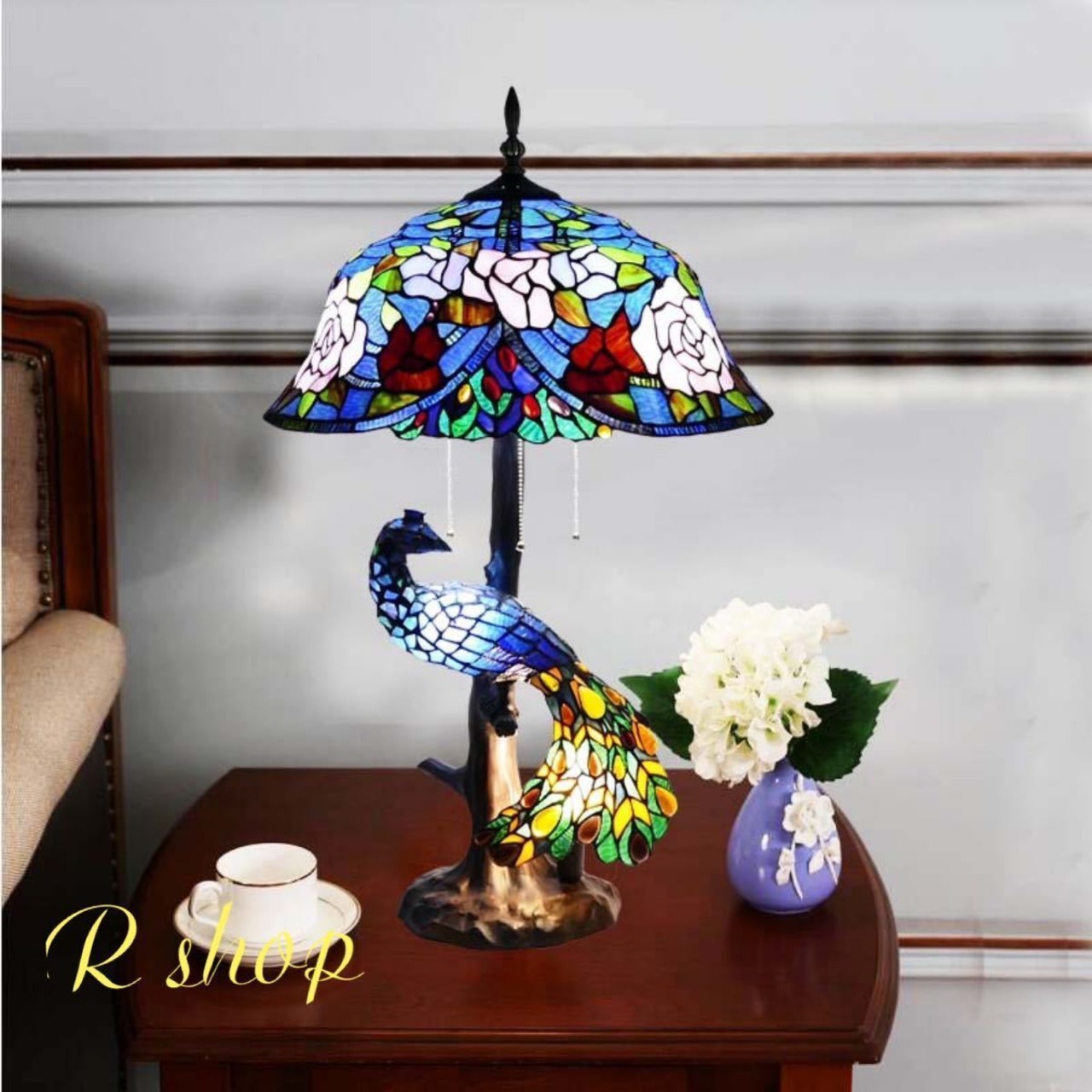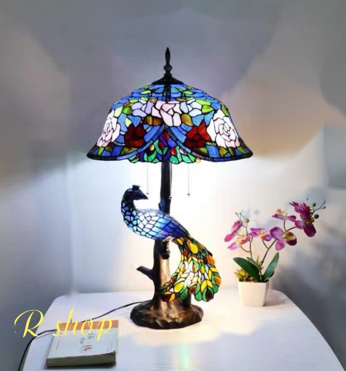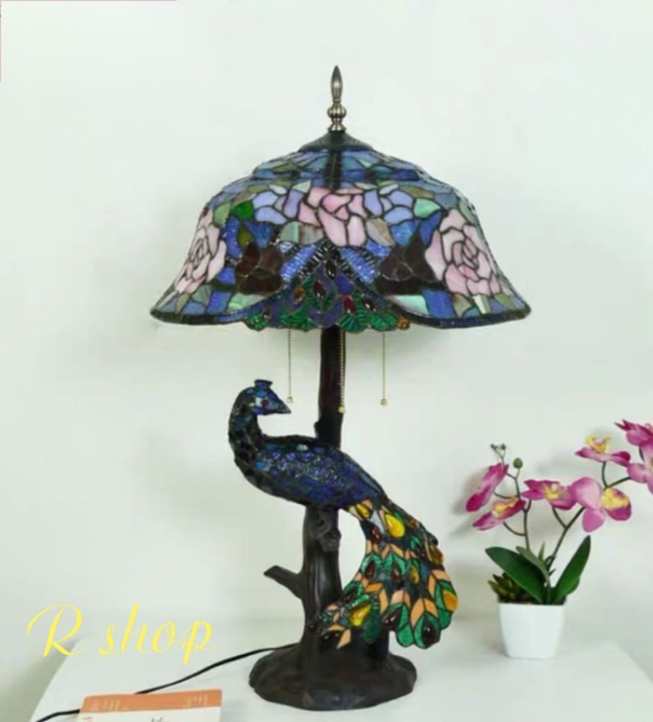 高級ガラス工芸スタンド .ステンドグラスランプ 卓上スタンド 豪華テーブルランプ 卓上照明