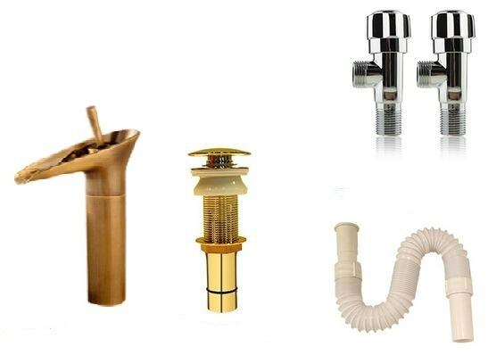 0121F176-3豪華洗面ボウルセット陶器洗面台 トイレ 手水鉢 手洗器 手洗い鉢 洗面器 蛇口 排水金具付き