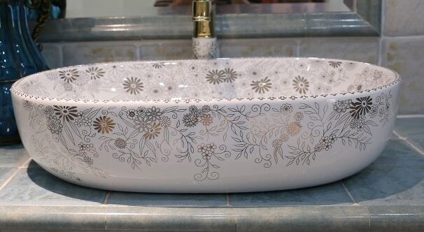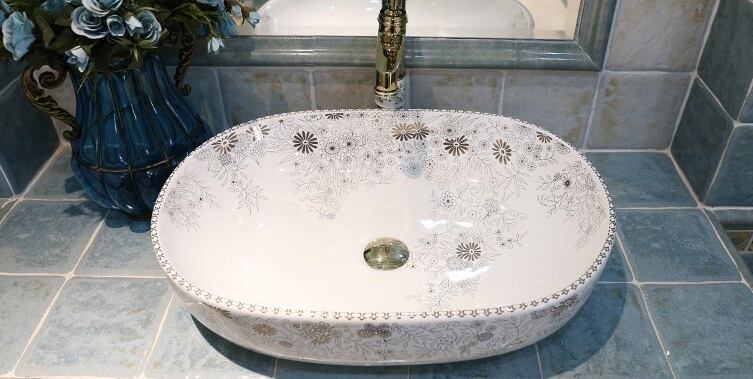 豪華洗面ボウルセット陶器洗面台 トイレ 手水鉢 手洗器 手洗い鉢 洗面器 蛇口 排水金具付き