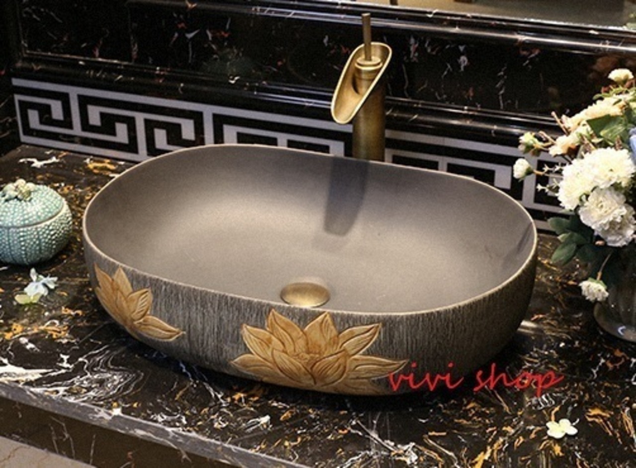1220F54豪華洗面ボウルセット陶器洗面台 トイレ 手水鉢 手洗器 手洗い鉢 洗面器 蛇口 排水金具付き