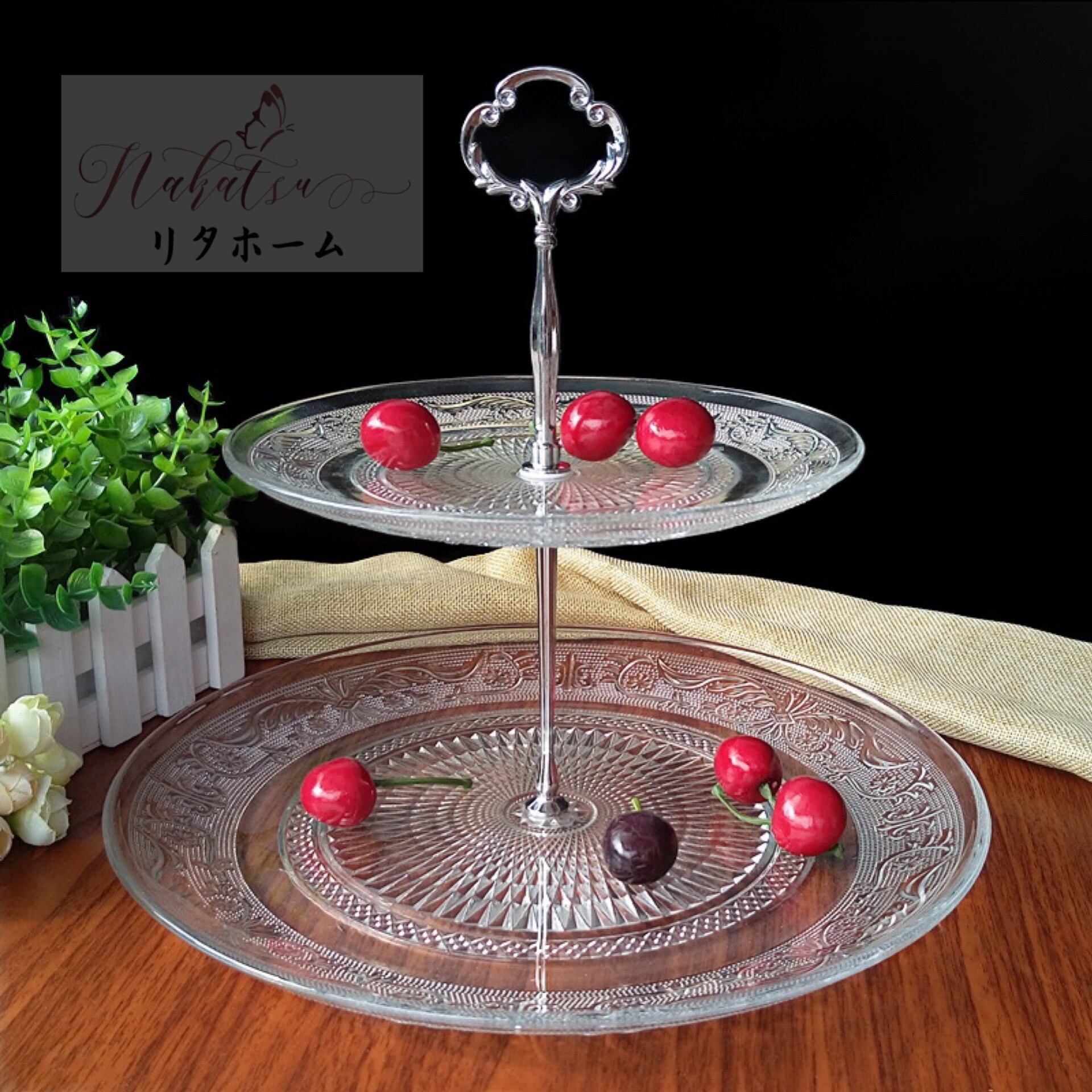 ケーキ スタンド プレート 2段セット アフタヌーンティー フルーツガラス