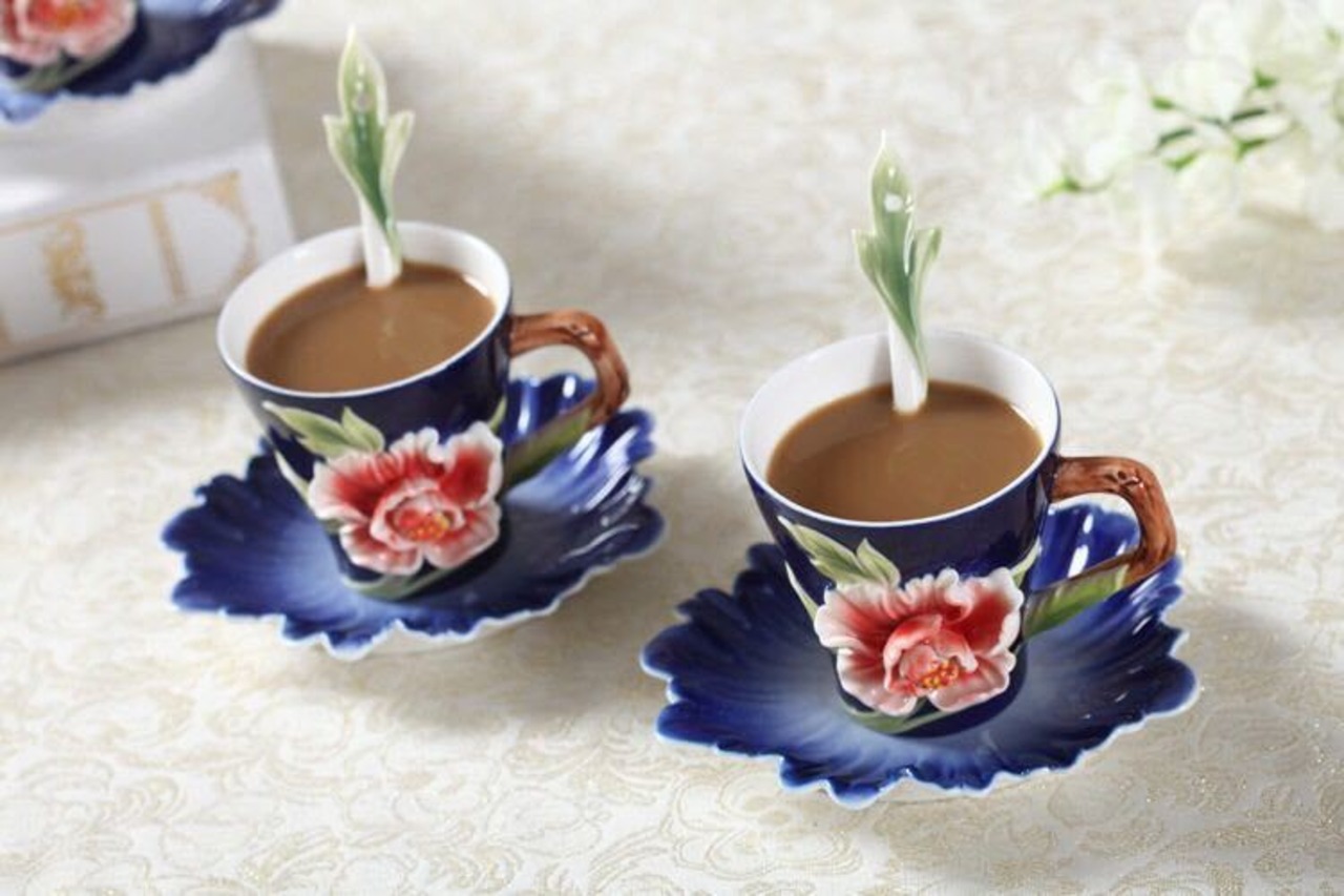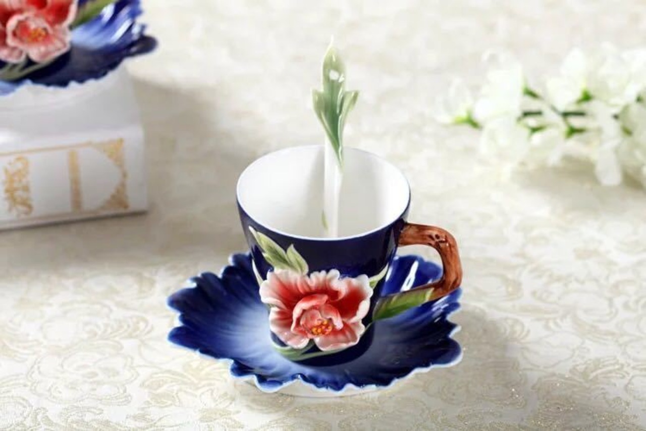 上品ティーカップ&ソーサー 4客セット 花柄.陶器ティーセット 立体花型