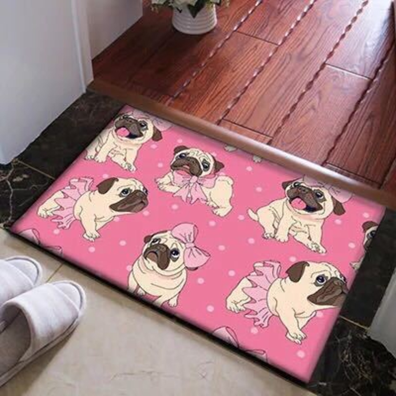 パグタイプ☆ラグマット 玄関マット.カーペット.お風呂マット 犬柄60x40サイズ パグ雑貨