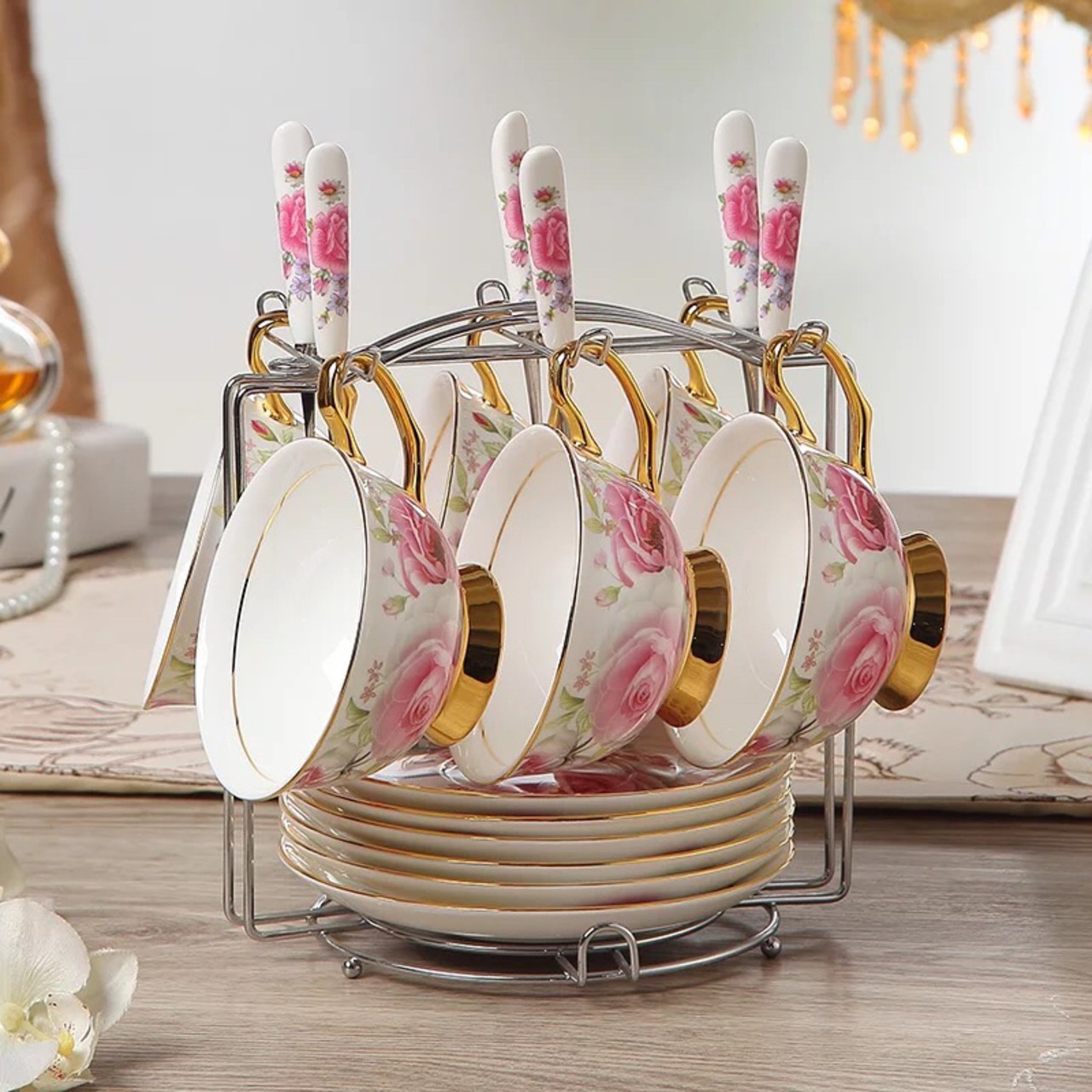 西洋ティー・コーヒーカップセット カップ&ソーサー6客セット 花柄.姫糸雑貨ティーセット