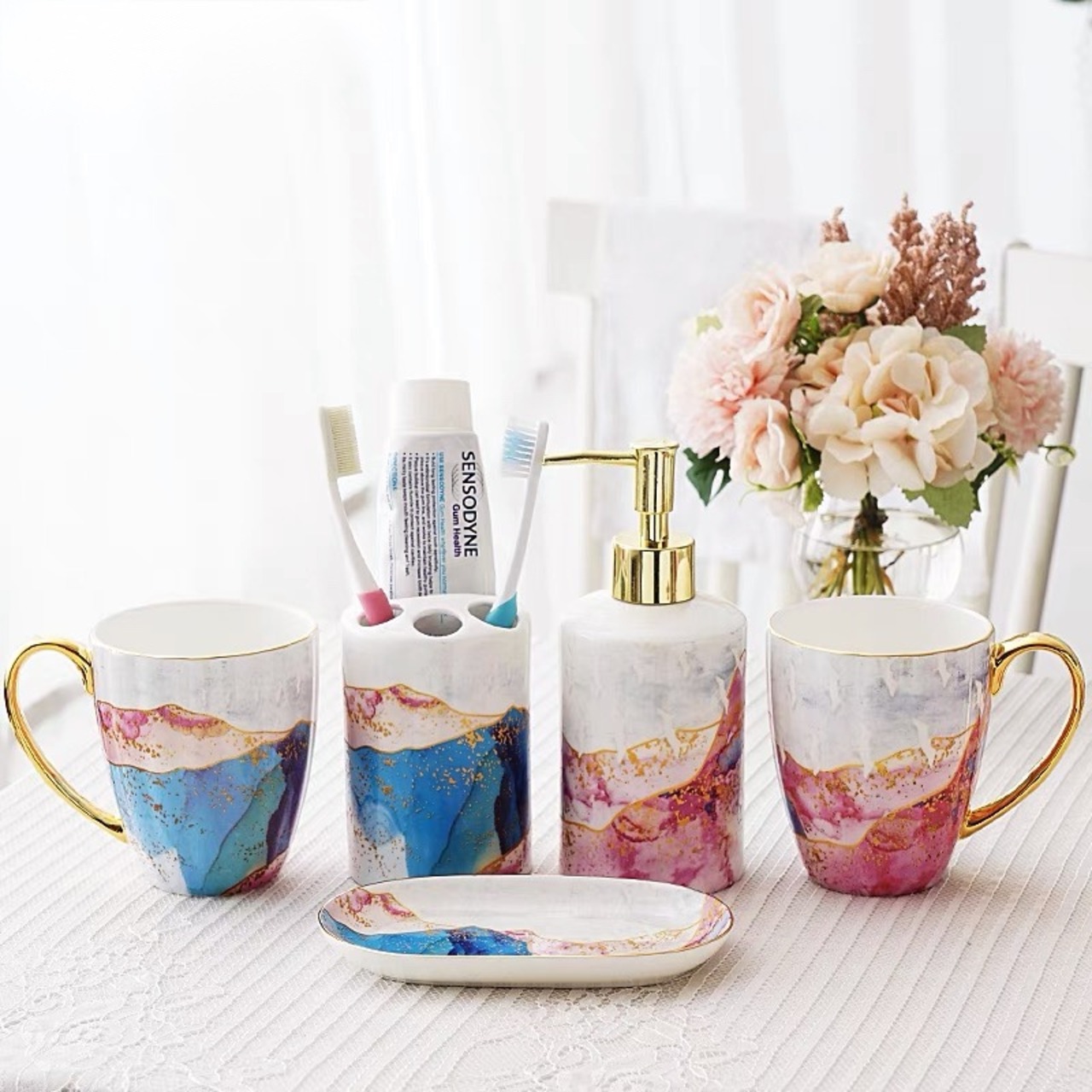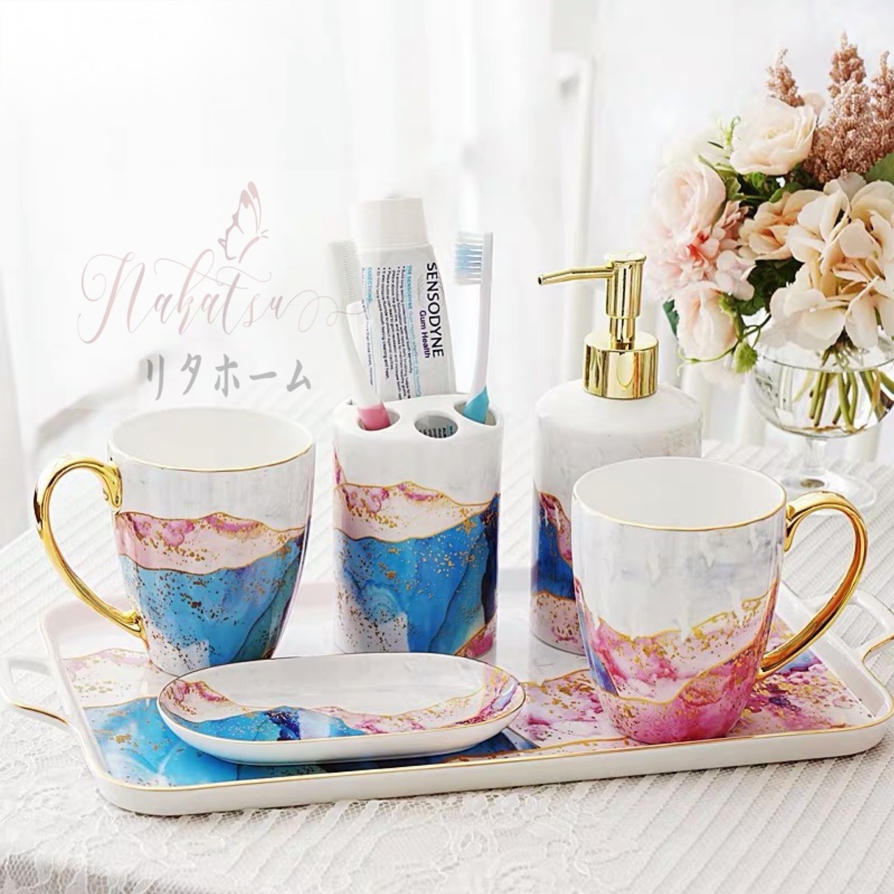 高級サニタリー6点セットディスペンサー 歯ブラシスタンド .洗面所用品