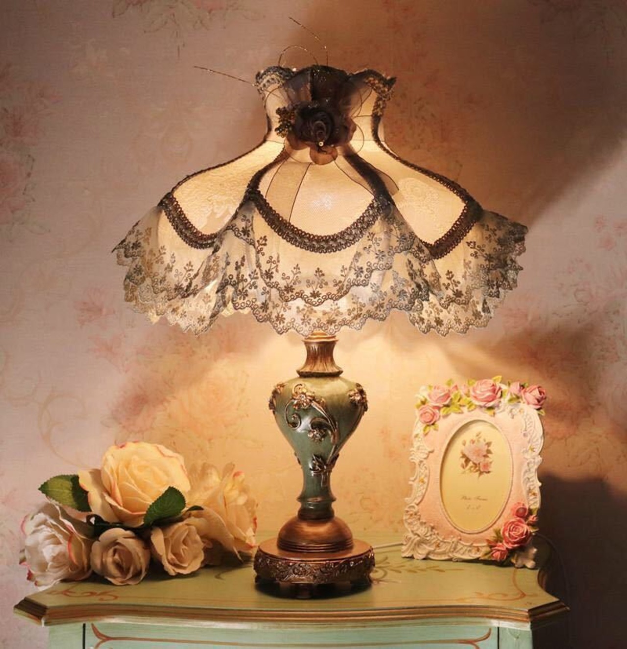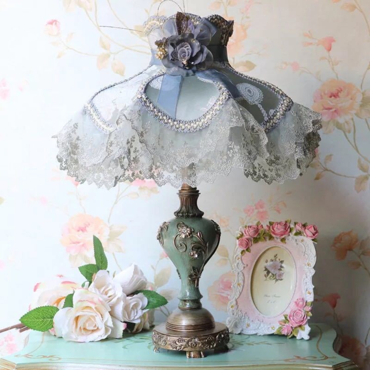 照明 スタンドライト テーブルランプ デスクライト姫系雑貨 花柄ローズステンド