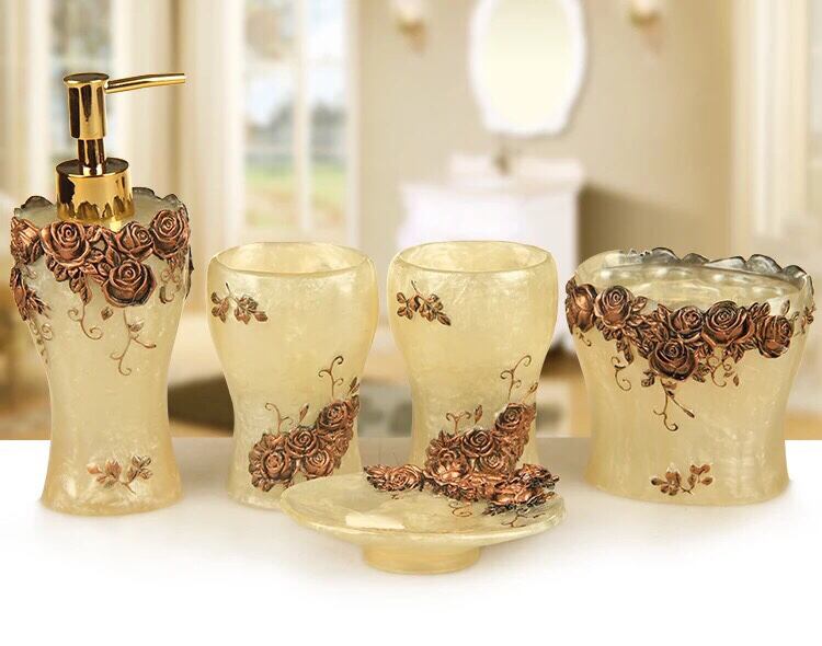 バスルーム5点セット ソープディスペンサー 歯ブラシスタンド 石鹸置き コップ 洗面用具 バス用品