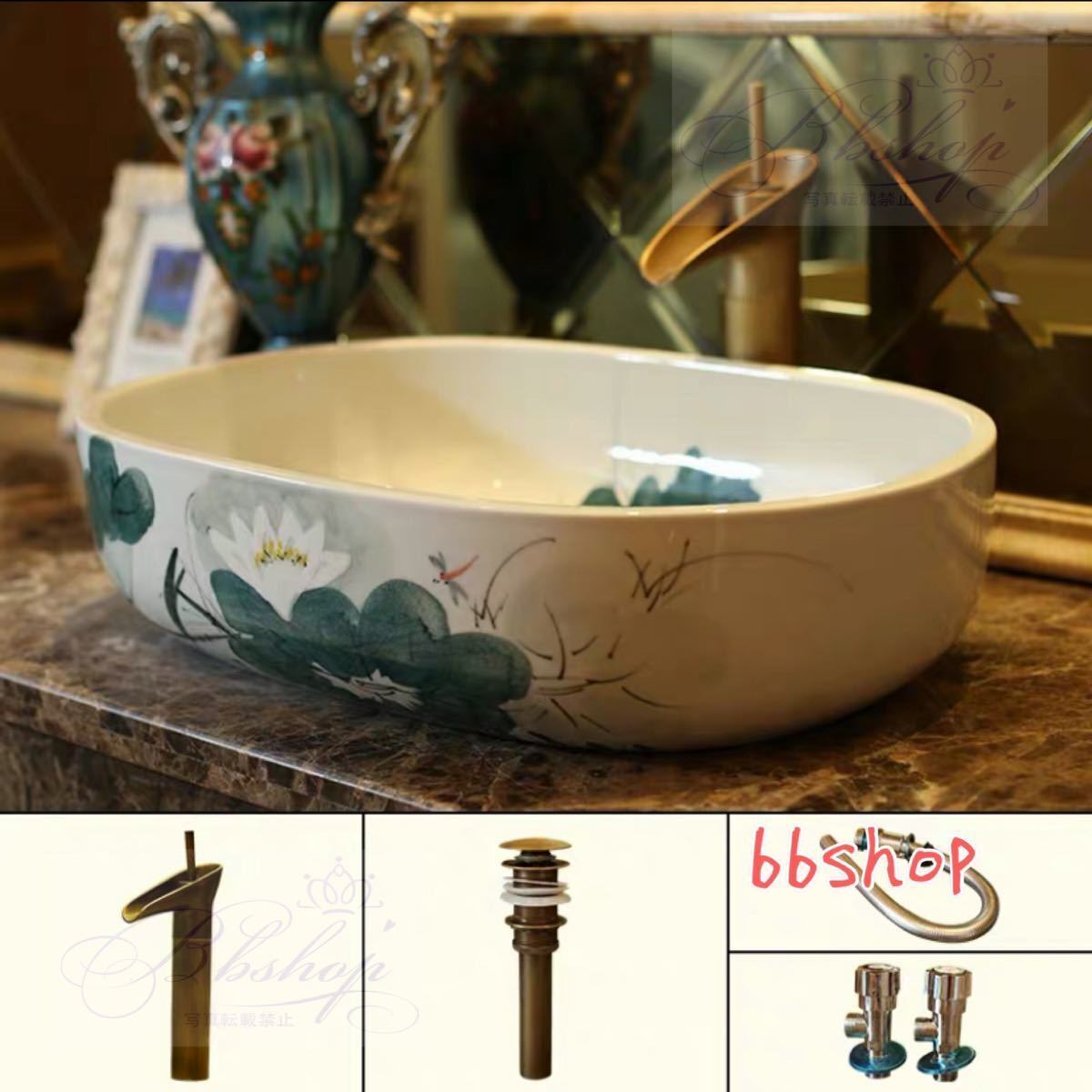 洗面ボール 高級洗面台 洗面ボウルセット 陶器 手水鉢 手洗器 手洗い鉢 洗面器 蛇口 排水金具付き