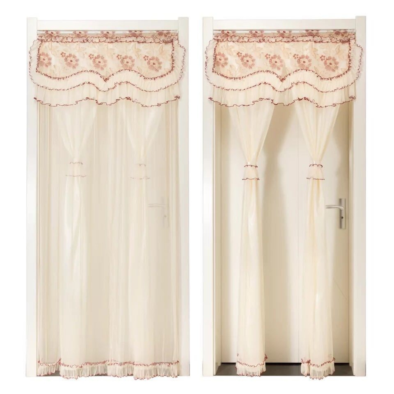 のれん ロング 二重レース フラワー柄 姫系二重タイプ 暖簾 間切り 姫系雑貨 85x200