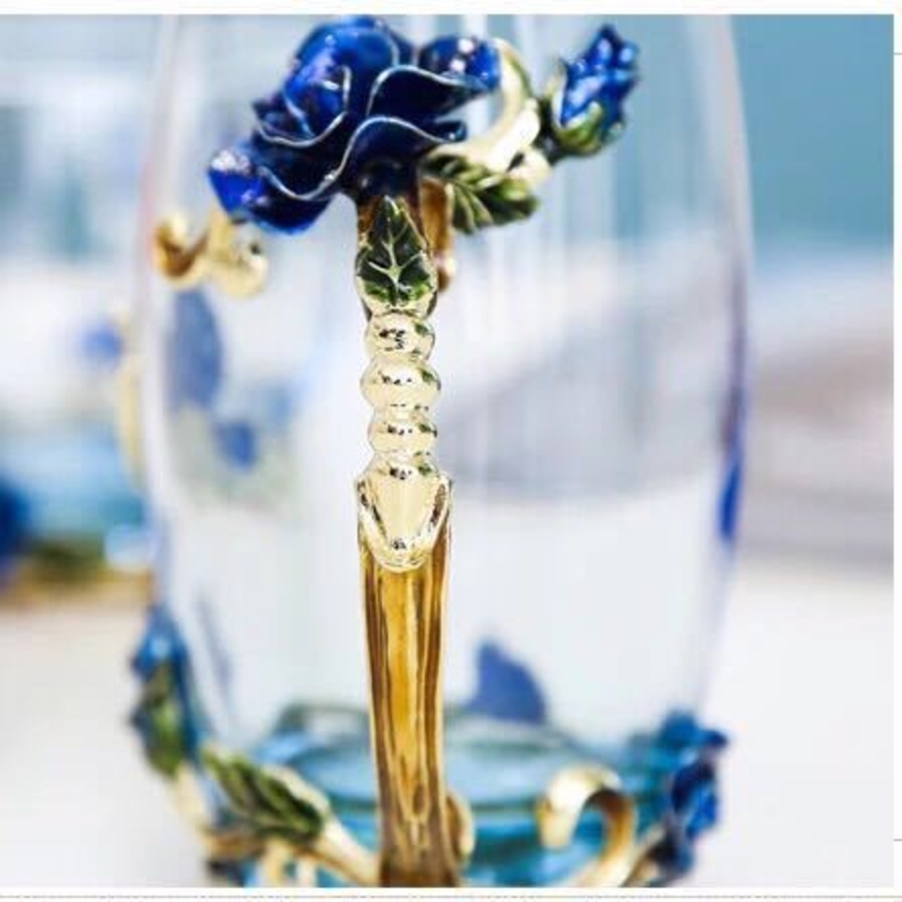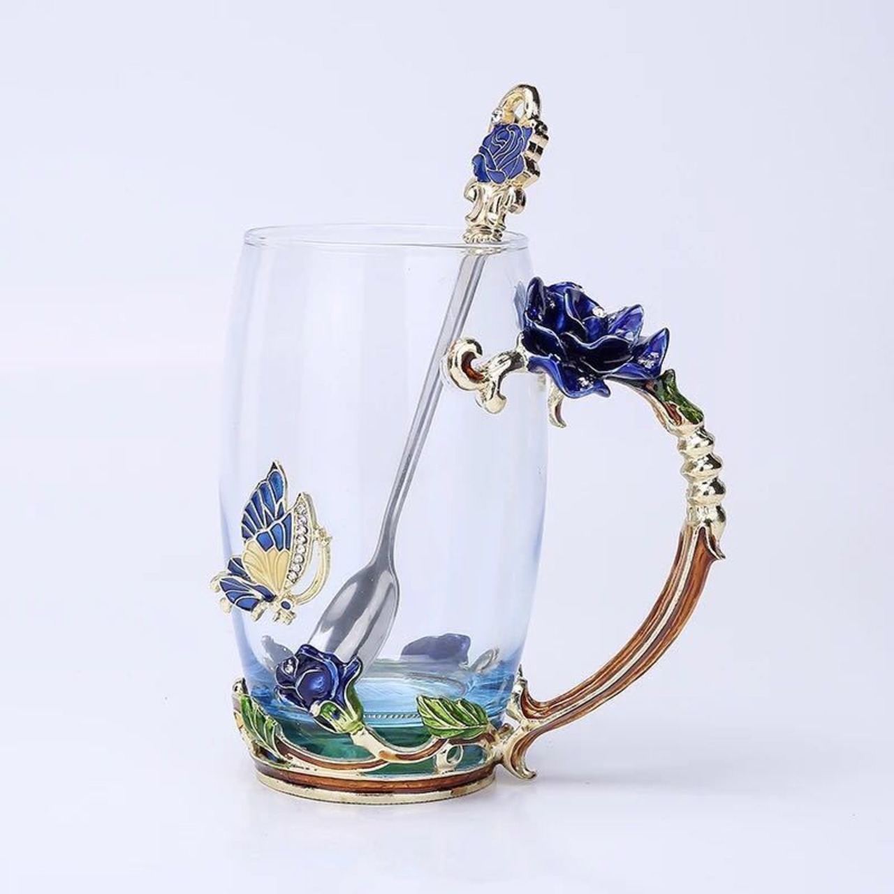 薔薇花柄ガラス製 .ティーセット 高級コーヒーカップセット 蓋付き