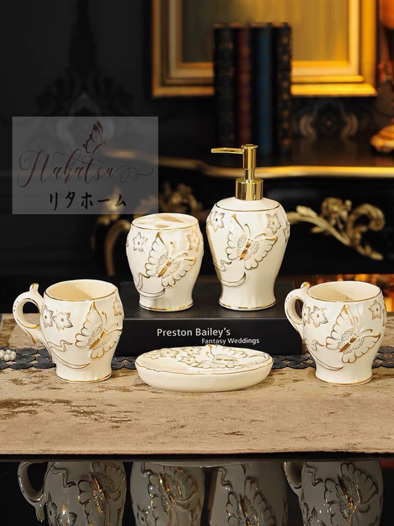 高級サニタリー5点セットディスペンサー 歯ブラシスタンド .洗面所用品
