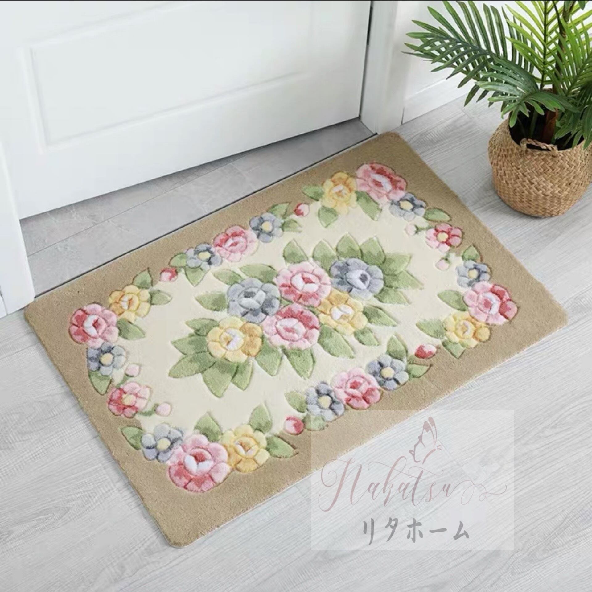 ラグマット リビングマット.玄関マットカーペット お風呂マット 花柄