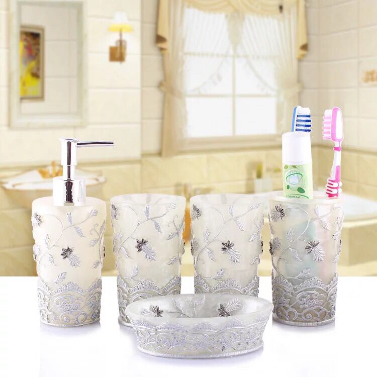 ソープディッシュ サニタリー 洗面用具5点セットホルダー タンブラー ディスペンサー 歯ブラシスタンド バス用品 .姫系雑貨