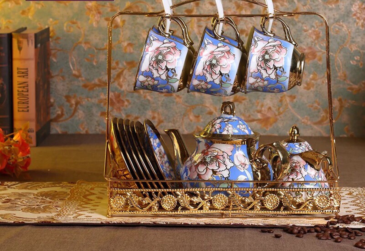 ティー・コーヒーカップセット カップ&ソーサー6客セット 花柄 姫系雜貨 上品陶磁器ティーセット