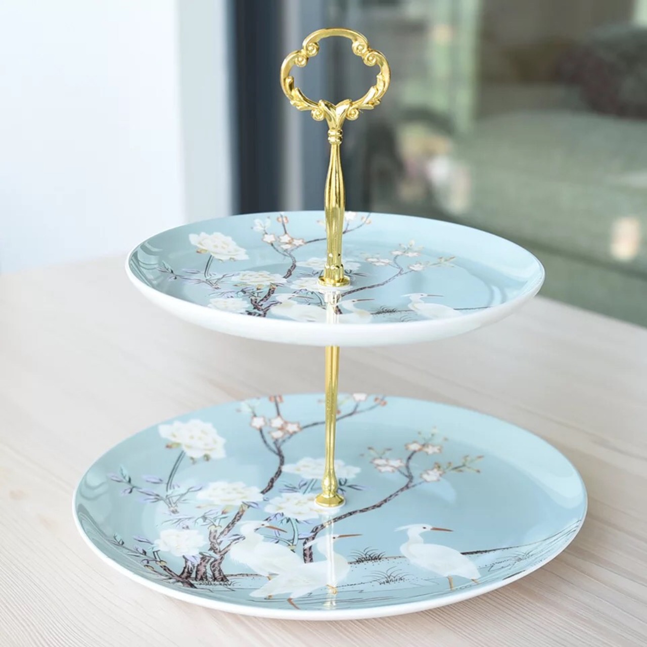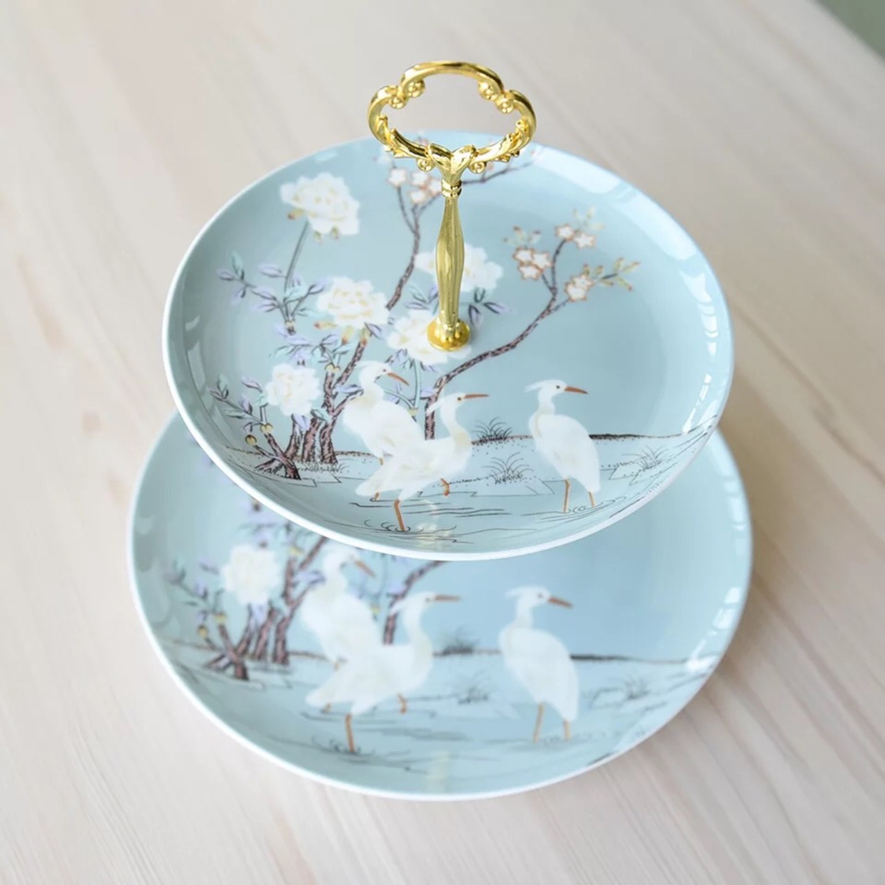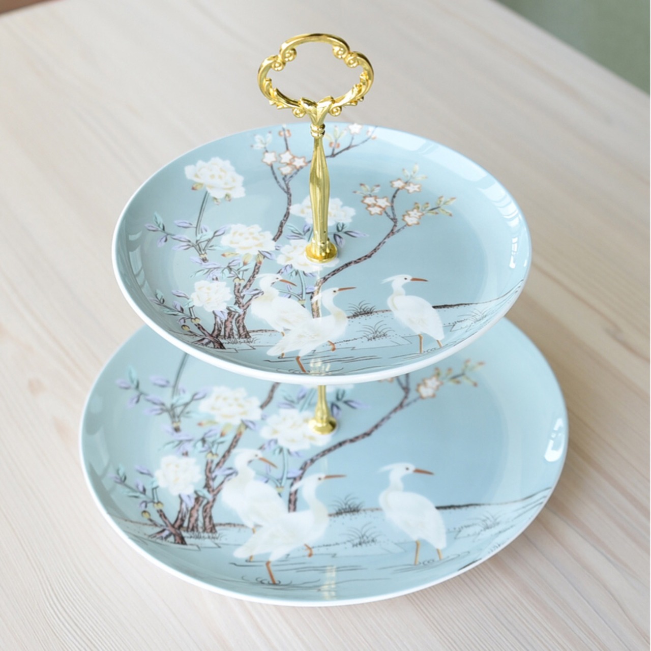 ケーキ スタンド プレート 2段セット アフタヌーンティー フルーツ トレー 皿 花柄