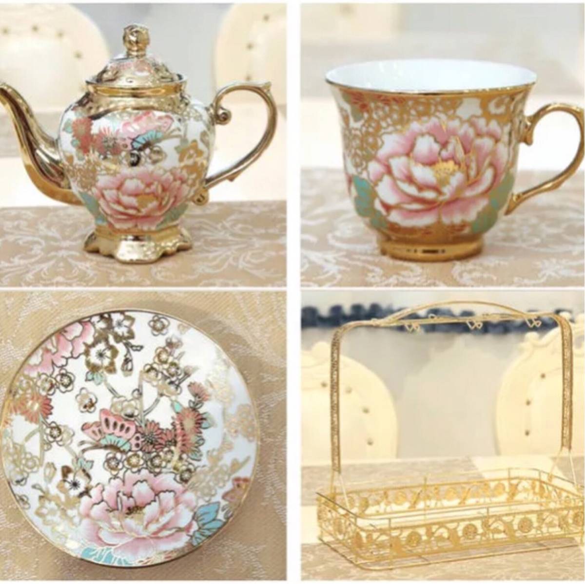 上品ティーカップ&ソーサー 6客セット 花柄.陶器ティーセット