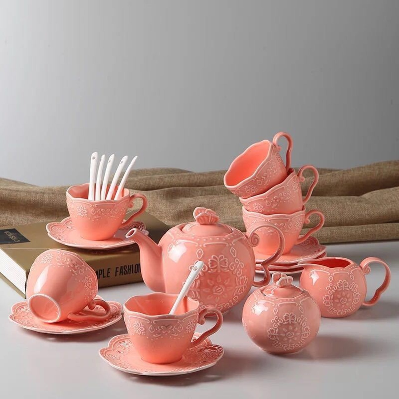西洋ティー・コーヒーカップセット カップ&ソーサー6客セット .花柄 上品陶磁器ティーセット