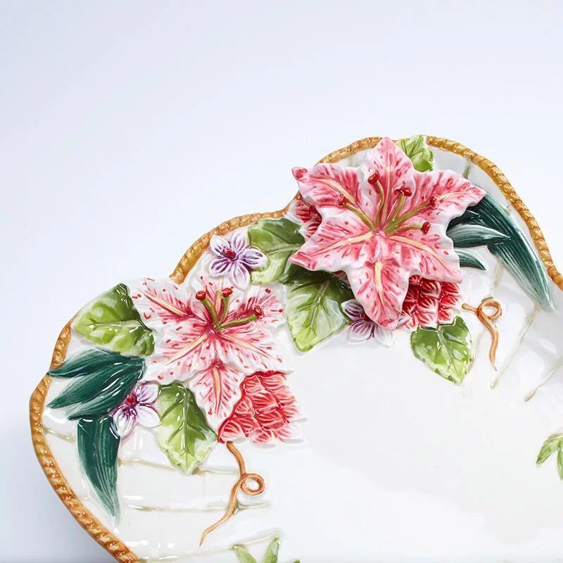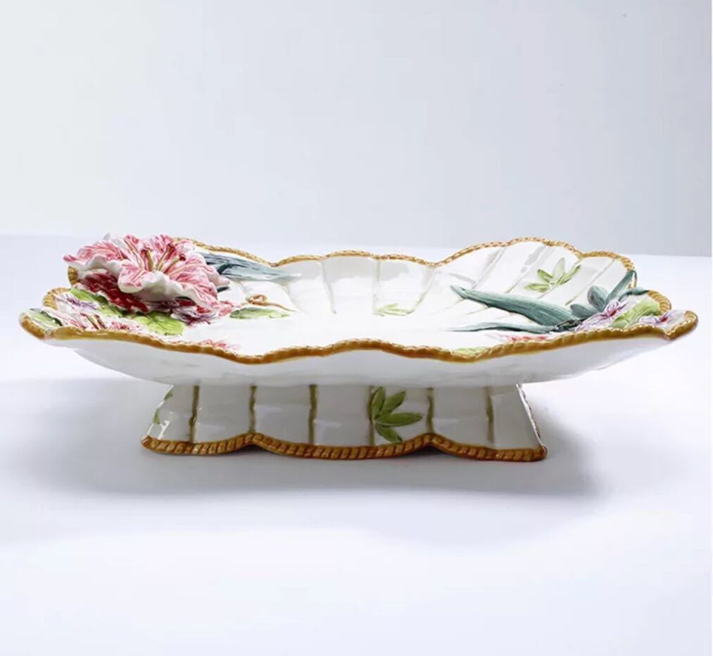 高級果物皿 盛り皿 お菓子皿 フルーツプレート、花柄豪華~果物カゴ お菓子鉢 立体花型