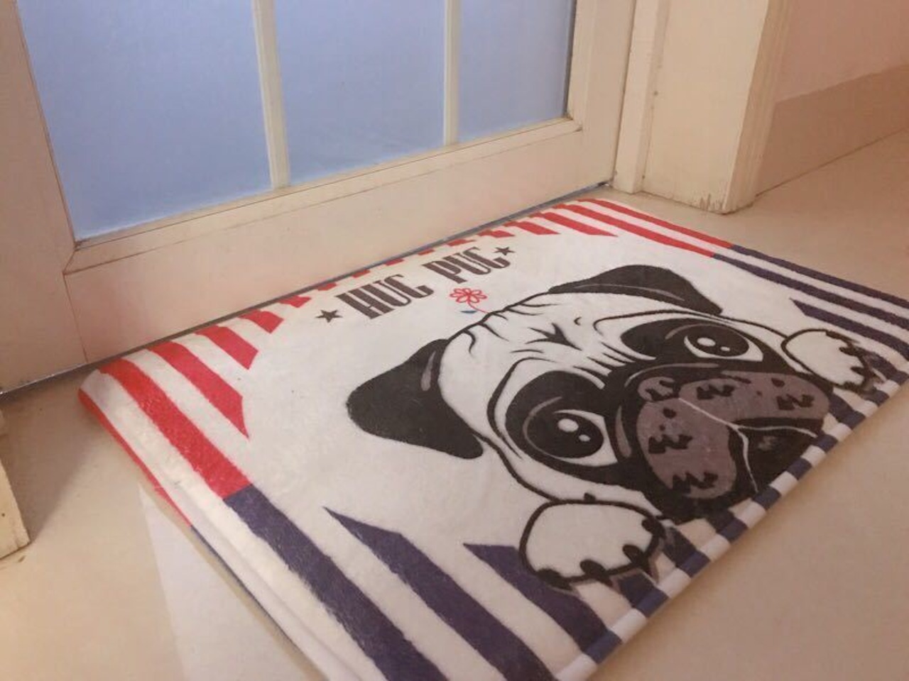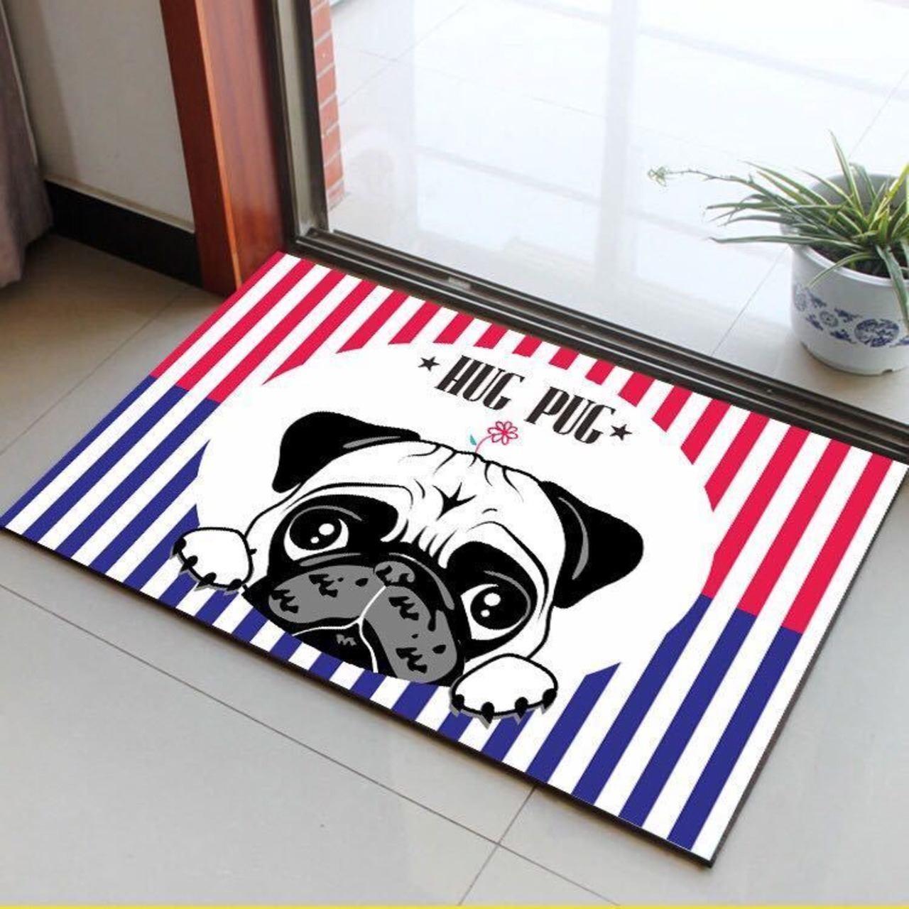 パグタイプ☆ラグマット リビング.玄関マット.カーペット.お風呂マット.犬柄40x60cm