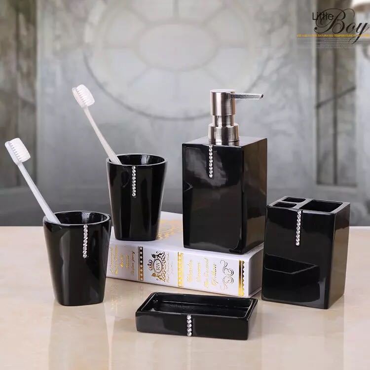 ソープディッシュ サニタリー 洗面用具5点セットホルダー タンブラー ディスペンサー 歯ブラシスタンド バス用品