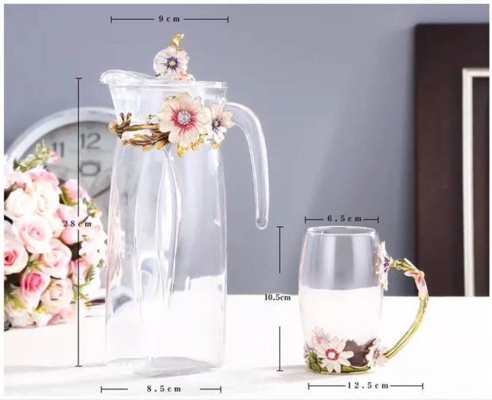 ティー・コーヒーカップセット ガラス製カップ4客セット バラ花柄 .姫系雑貨