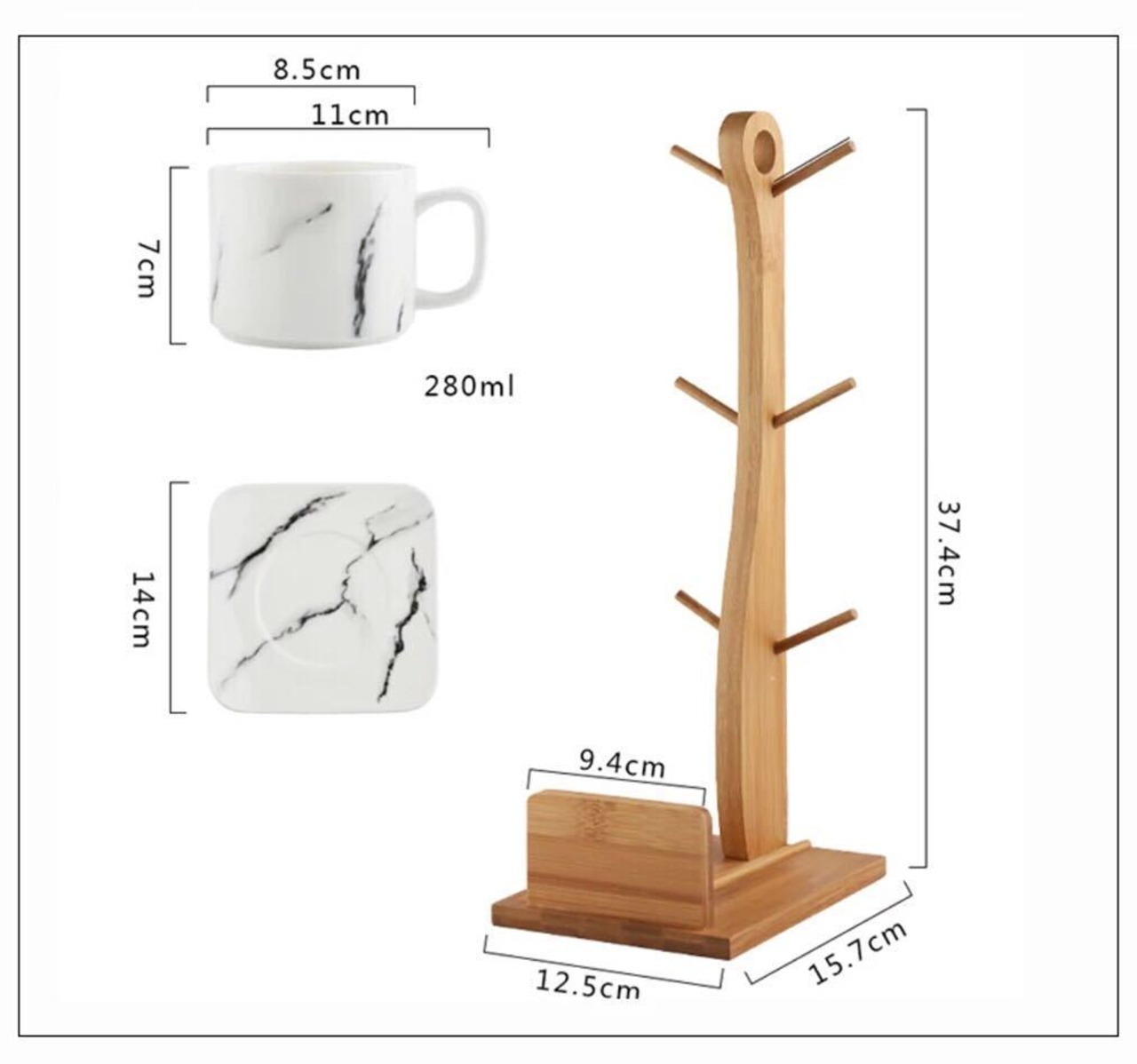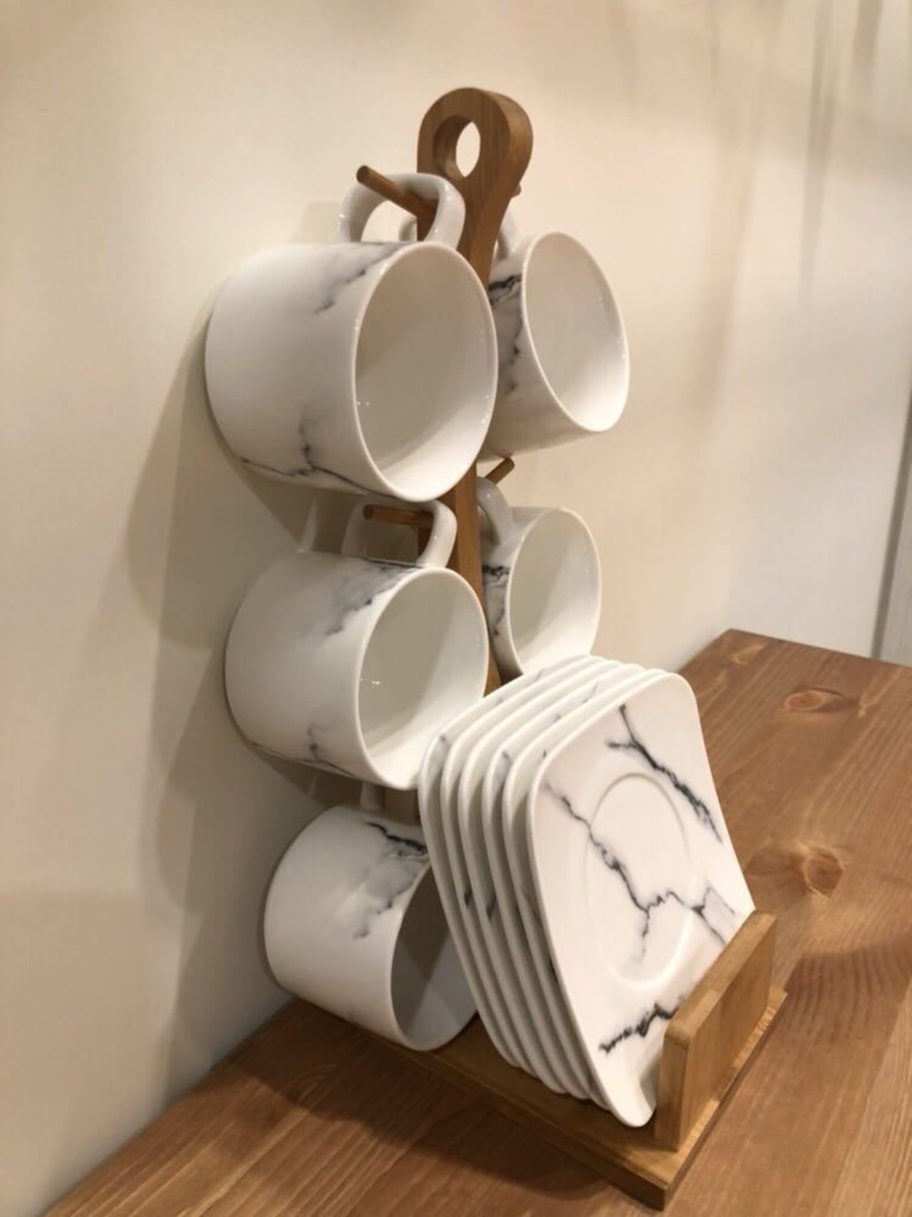 ティー・コーヒーカップセット カップ&ソーサー6客セット .大理石紋陶磁器