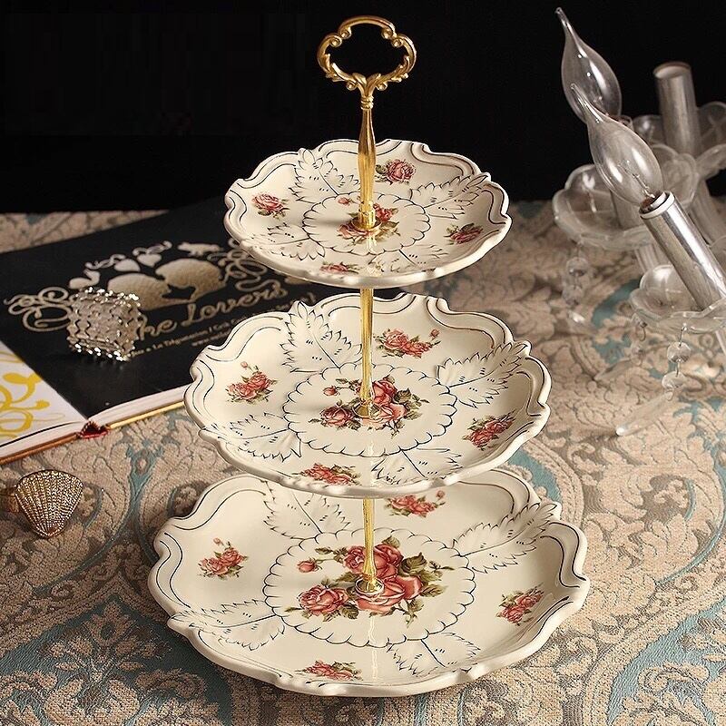 ケーキ スタンド プレート 3段セット アフタヌーンティー フルーツ トレー 皿 薔薇