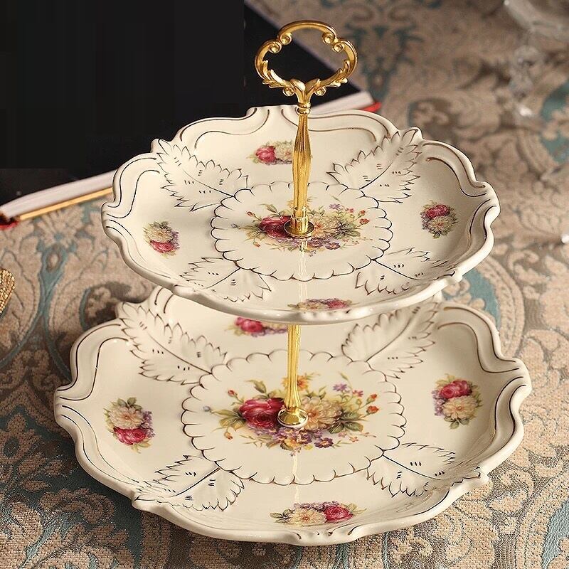 ケーキ スタンド プレート 2段セット アフタヌーンティー フルーツ トレー 皿.薔薇