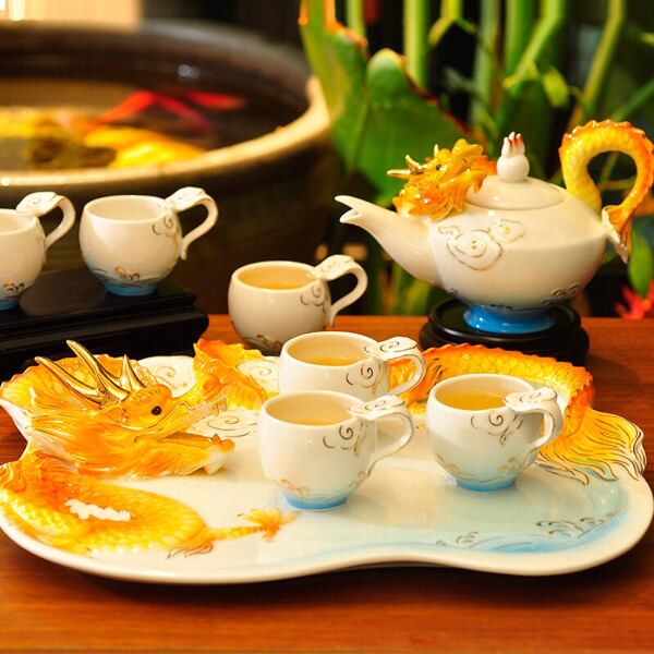 6客茶器揃 湯呑 急須 ポット 茶器セット ティーセット~りゅう柄