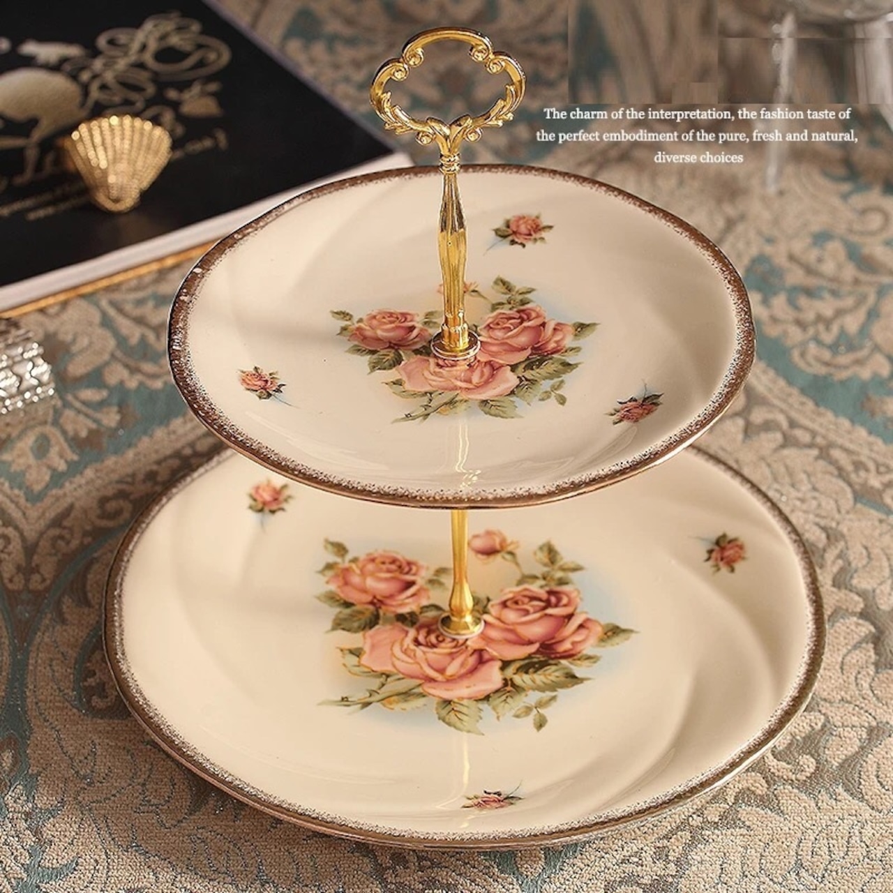 ケーキ スタンド プレート 2段セット アフタヌーンティー フルーツ トレー 皿.薔薇.