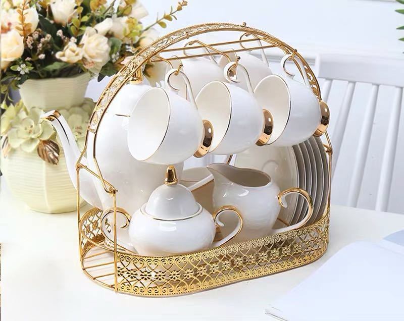 ティー・コーヒーカップセット カップ&ソーサー6客セット .陶磁器 カップランク付き