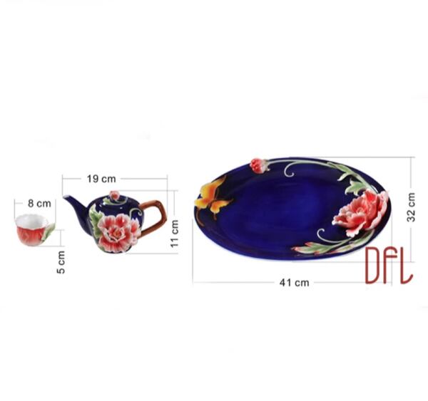 6客茶器揃 湯呑 急須 ポット 茶器セット ティーセット~赤ボタン