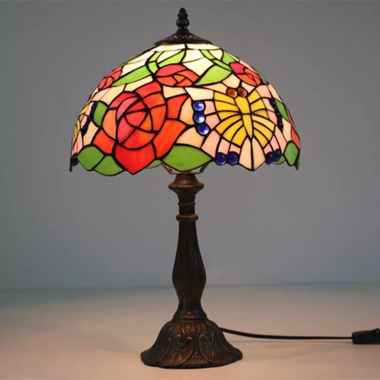 ステンドグラスランプ 薔薇 卓上スタンド 豪華テーブルランプ