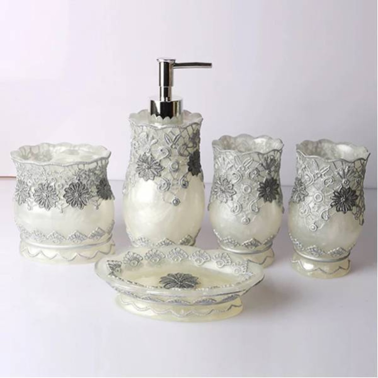 バスルームセット 5点セット ソープディスペンサー 歯ブラシスタンド 石鹸置き コップ バス用品 洗面用具