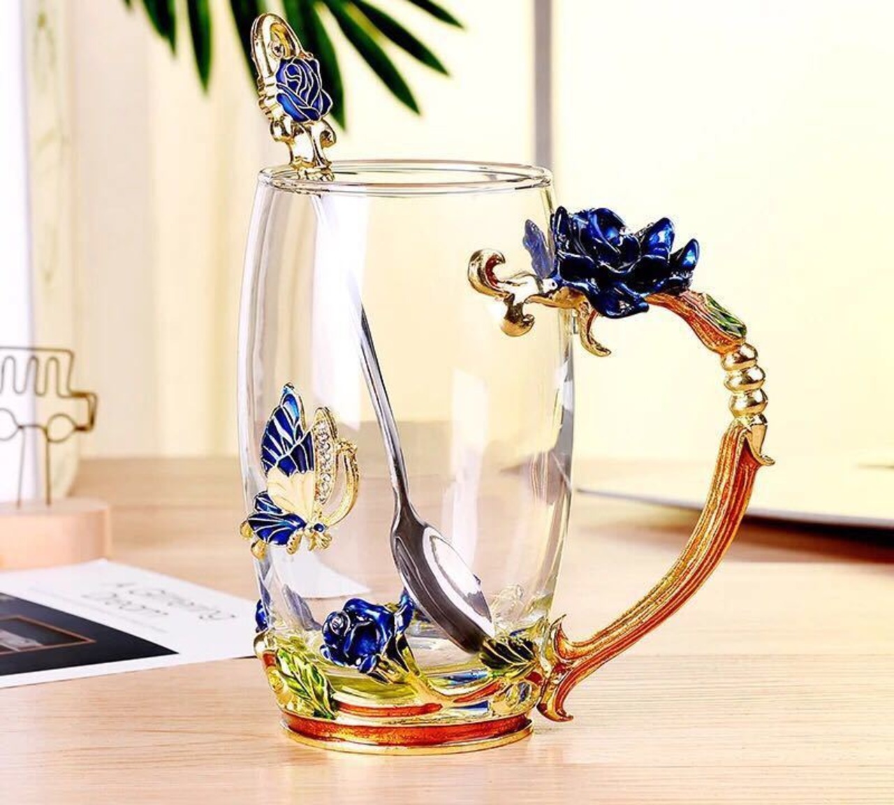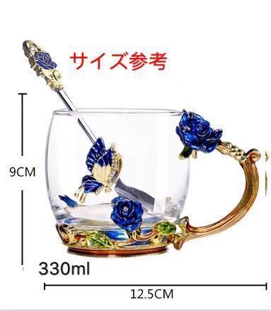薔薇花柄 ガラス製 .ティーカップ 4点セットコーヒーカップ