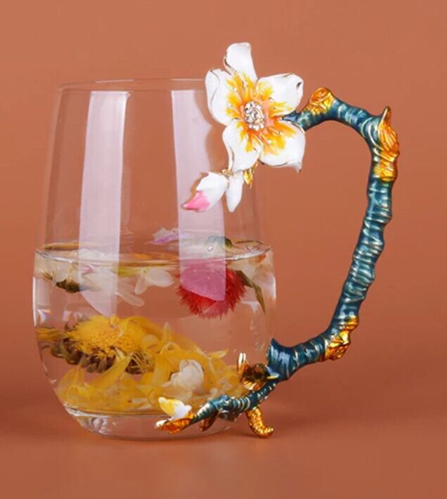 西洋ティー・コーヒーカップセット ガラス製カップ2客セット 花柄