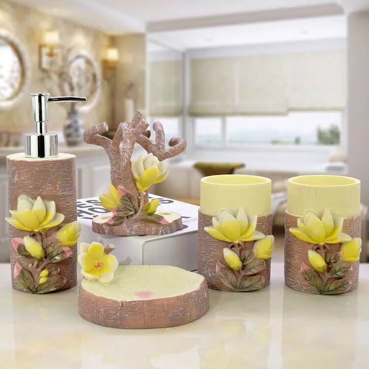 ソープディッシュ サニタリー 洗面用具5点セットホルダー タンブラー ディスペンサー 歯ブラシスタンド バス用品
