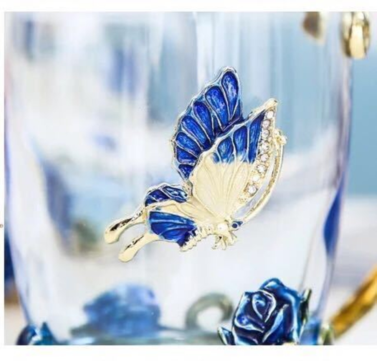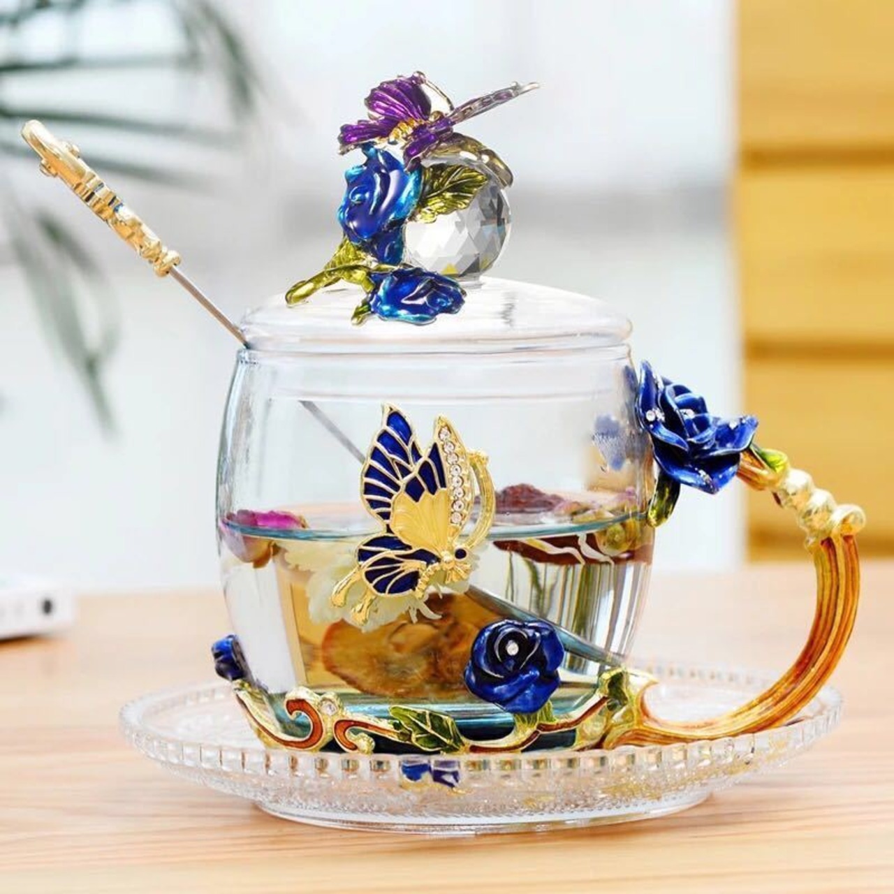 薔薇花柄 ガラス製 .ティーカップ 4点セットコーヒーカップ