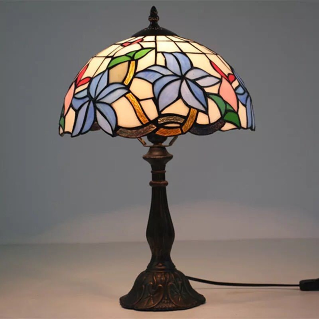 ステンドグラスランプ 花柄卓上スタンド 豪華テーブルランプ P