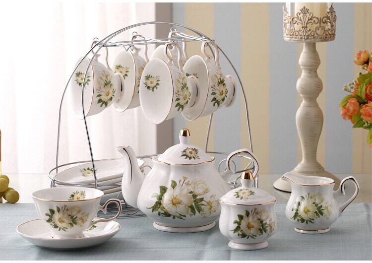 西洋ティー・コーヒーカップセット カップ&ソーサー6客セット 花柄カップ 上品 陶磁器ティーセット