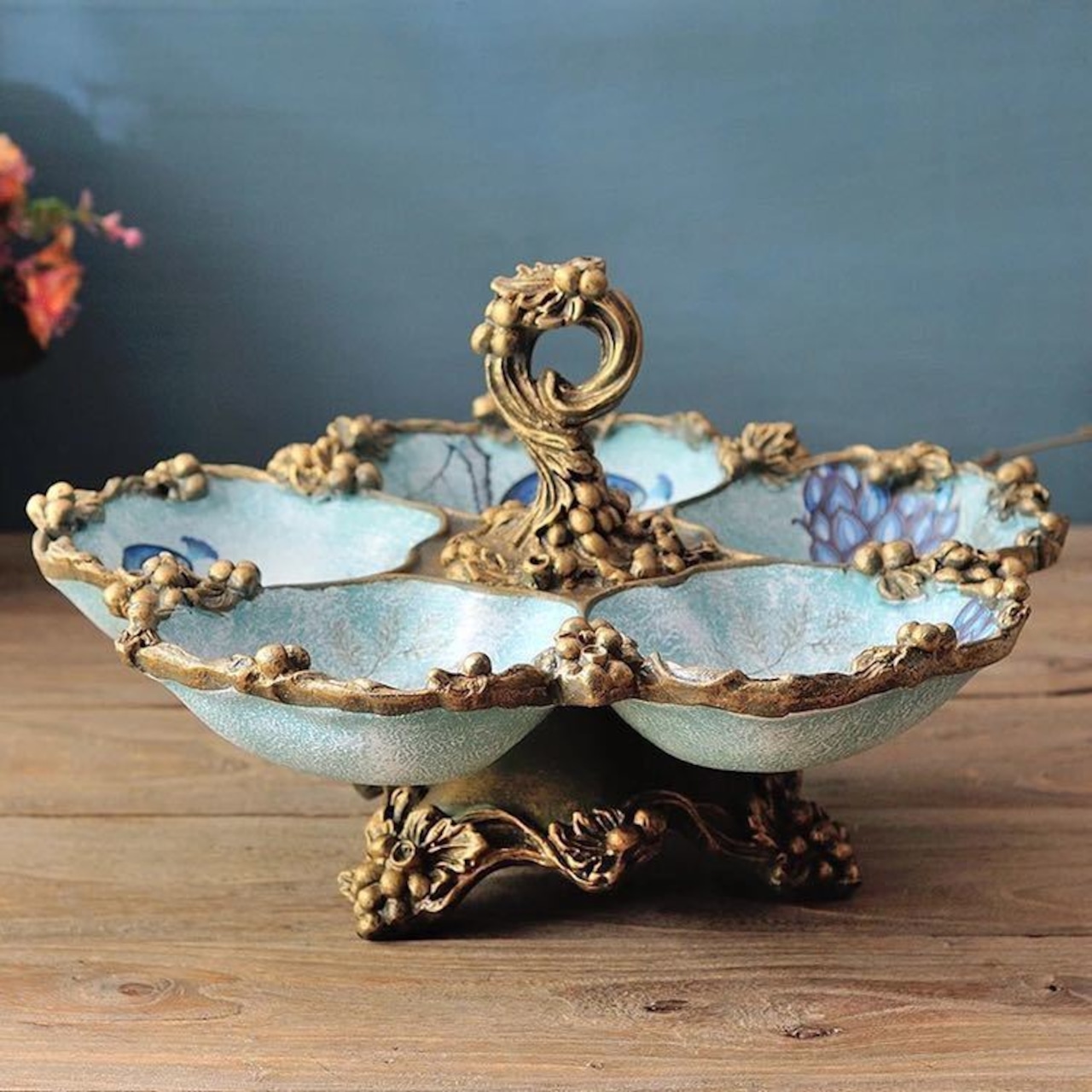 高級果物皿 盛り皿 お菓子皿、フルーツプレート、花柄豪華~果物カゴ お菓子鉢