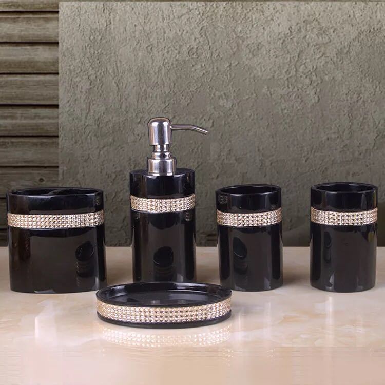 ソープディッシュ. サニタリー 洗面用具5点セットホルダー タンブラー ディスペンサー 歯ブラシスタンド バス用品