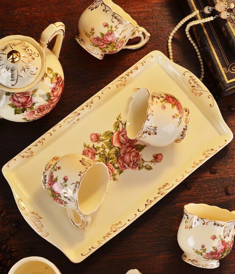 ティー・コーヒーカップセット カップ4客セット 薔薇花柄