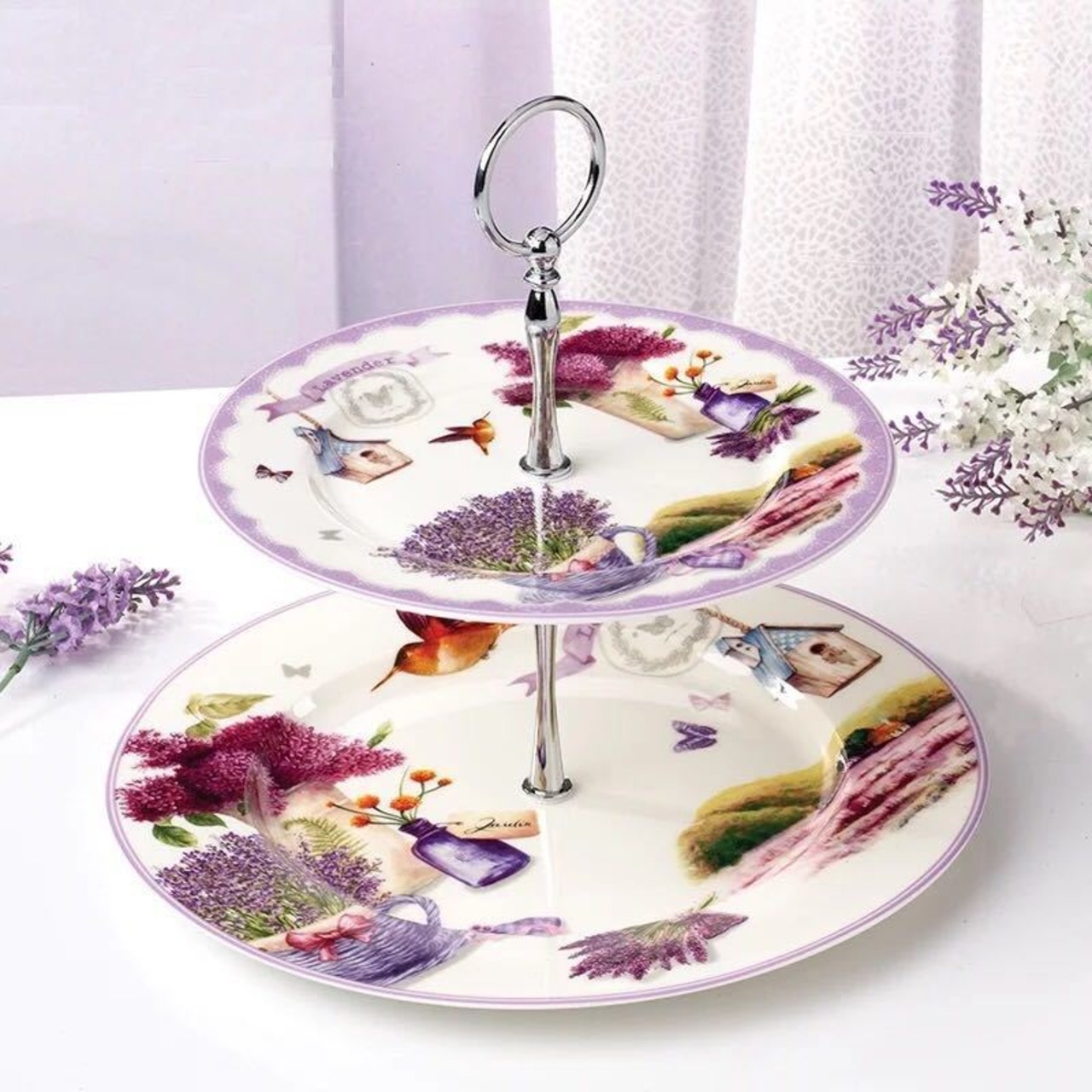 ケーキ スタンド プレート 2段セット アフタヌーンティー フルーツ トレー 皿 花柄