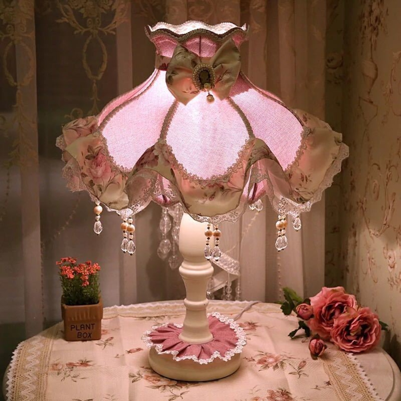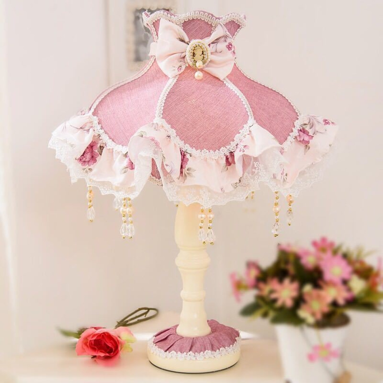 照明 スタンドライト テーブルランプ デスクライト姫系雑貨 花柄ローズステンド