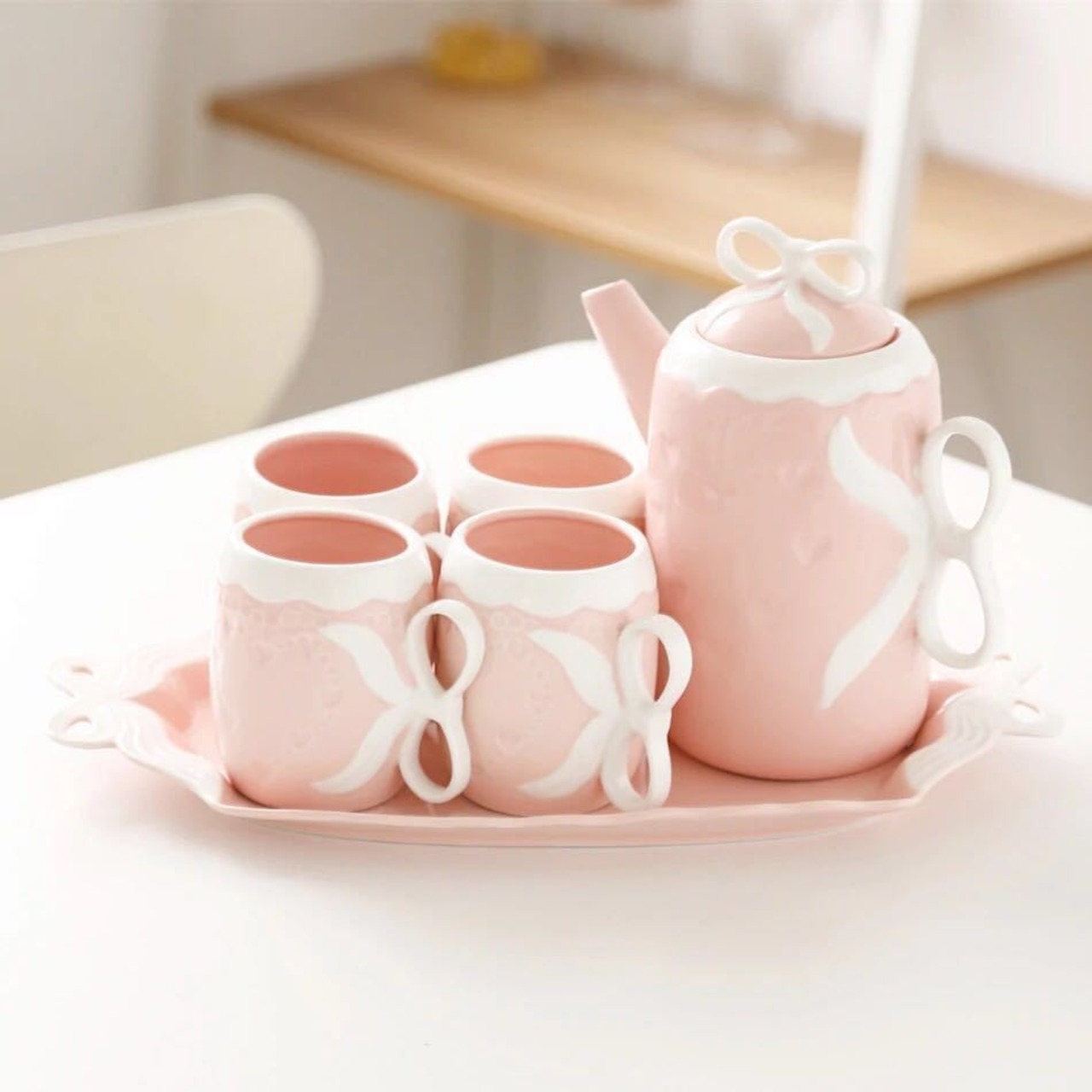 西洋ティー・コーヒーカップセット カップ4客セット姫系雑貨 ピンクリボン